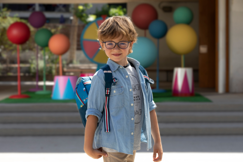 Przeciwsłoneczne soczewki okularowe Stellest® od Essilor® zapewniają ochronę przed promieniowaniem UV, redukują odblaski i zwiększają komfort widzenia, umożliwiając dzicku swobodne noszenie ich podczas aktywności na świeżym powietrzu.